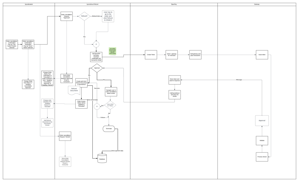 The below process flow diagram shows 'byondmarket refund process'. This flow should be related in byondmarket.