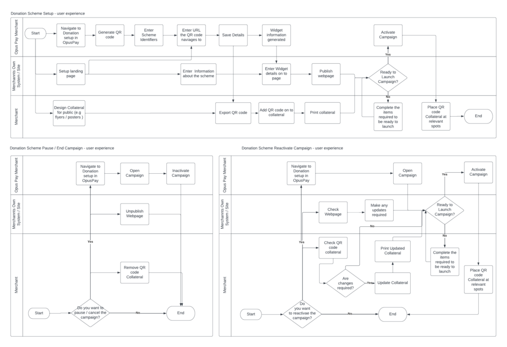 The user can scan a QR code, it would direct to an admin given landing page, in the landing page there is opuspay widget to enter amount and card details.