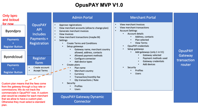The following is a high level view of the envisaged opuspay structure and functions.