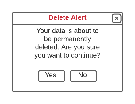 Pop-up alert window to confirm Deletion Yes or No
