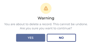 You are about to delete a record. This cannot be undone. Are you sure you want to continue?
